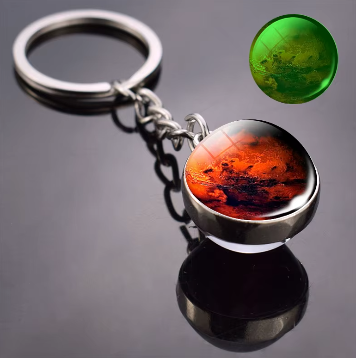 Cada llavero representa un planeta con una esfera de cristal 3D que brilla desde cualquier ángulo. Su efecto tridimensional da la sensación de tener una mini galaxia atrapada dentro del cristal.