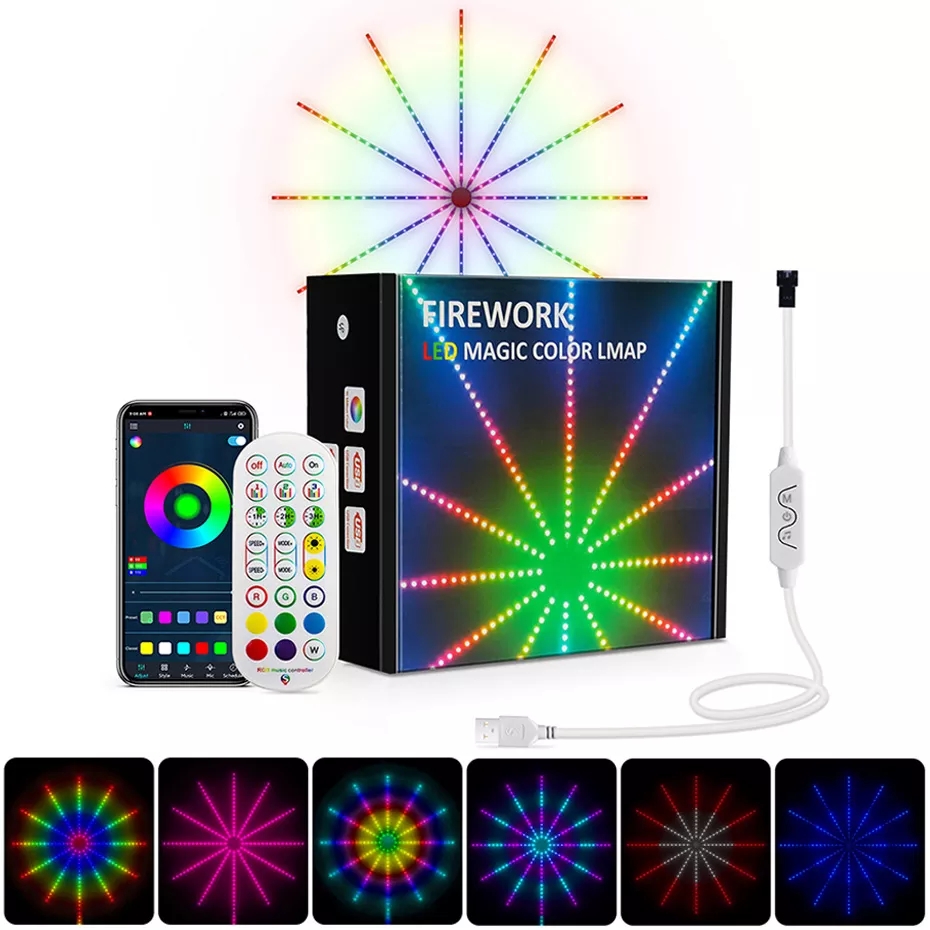 Las tiras de luces LED de fuegos artificiales se pueden usar para decorar su comedor, dormitorio, cocina, porche, salas de estar, especialmente ideales para días festivos y eventos como Nad,